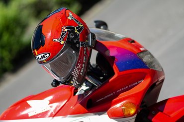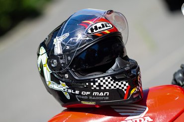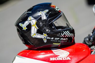 Mikor megláttam a Man TT-s grafikát, egyből tudtam, hogy nem kell tovább keresnem. Egyszerűen nekem találták ki. Mivel a piros és a fekete színek mellett elég sok fehéret is festettek rá, így nem üt el a piros-fehér motoromtól, főleg úgy, hogy a bőrruhám fekete. De nem is a színek miatt választottam. Elöl a kockás zászló, kétoldalt a Man-szigeti címer, hátul pedig a pályarajz teszi igazán ütőssé. Illetve ami még legalább kettővel emeli a menőségi faktort, hogy hátul olyan, mintha a karbon héj csak lakkozva lenne. A valóságban közelről nézve látszik, hogy a karbonminta festve van, de akit ez zavar, nézze messzebbről.