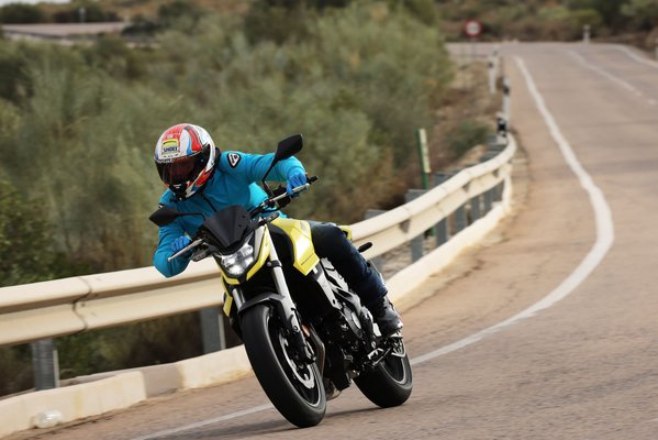 Nyelezve meglepően gyorsan belenyal a kétszázba, de a viszonylag hosszú végáttételnek köszönhetően 130-nál bőven hatezer alatt forog a 270 fokban elékelt főtengely. Mivel csúszókuplungot is beépítettek, nem kell tartani a motorféktől blokkoló hátsó keréktől sem. Ezt a teljesítményt azok is nyugodtan bevállalhatják, akik friss jogsival pattannak a Hornet nyergébe. Természetesen elérhető a 48 lovas fojtókit, de a kipörgésgátló egyébként is megvéd az érzéketlen gázkezelés okozta személyi sérüléstől. Négyféle menetmódból (Rain/Road/Sport/User) és szintén négyféle megjelenítés közül lehet választani az ötcolos színes kijelzőn. Van Bluetooth-kapcsolat is, ami hangvezérléssel működtethető, illetve a négyállású joystick is kifejezetten könnyen kezelhető.