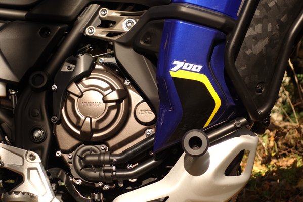 A hétszázas sorkettes általános jóságát már sokszor méltattuk, karakterisztikája talán ehhez a felépítményhez illik a legjobban. Legnagyobb teljesítményét kilencezres fordulaton adja le, de ritkán van szükség addig elforgatni. A rövidebb áttétel miatt úgy 120-ig egészen dinamikus, de nagy sebességű autópályás utazás már kívül esik a komfortzónáján. Nincs mit tenni, a hatalmas homlokfelület miatt a légellenállás hamar felfalja a lóerőket. Viszont a pocsék alsórendű mellékutakon simán átrongyolsz ott, ahol egy Tracer 7-essel már inkább visszafordulnál. Terepen pedig sokkal többet tud, mint amit az átlagmotoros ki tudna használni.
