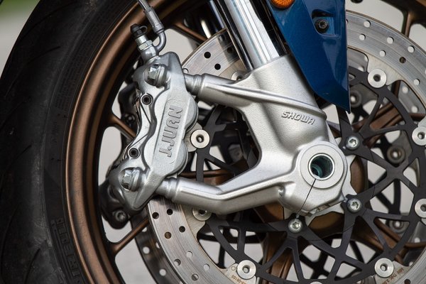 Gyorsan vérszemet is kaptam, és az M1-esen elkezdtem nagyobb tempót próbálgatni, hiszen a gyári végsebesség 200 km/h-ban van megadva. Remélem, nem kapok feljelentést érte, ha elárulom: nem sokkal a megengedett tempó felett olyan elviselhetetlenül vonyít a hajtáslánc, hogy eszembe sem jutott forszírozni a törvénysértést. Nem beszélve a szintén megjósolhatatlan hatótávról, amivel érzésre még a megengedett tempóval sem jutnék el Győrig. Úgyhogy inkább visszakanyarodtam a hetes útra Diósd felé, de országúton sem nyújt túl nagy élményt a szerkezet. Bár 235 kilóval nem tűnik nehéznek, de átlagos futóművel közepesen tohonyán mozog. És bár a spanyol J Juan radiális féknyergei nem néznek ki rosszul, a kifejezetten érzéketlen működés inkább alsó polcos komponenseket sejtet.