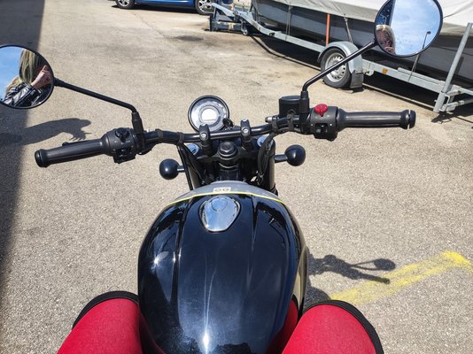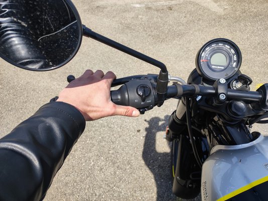 A tükörrel azért adódtak egyéb problémáim is: a mögöttem zajló forgalom teljes képét megszoktam a saját motorom tükrében, itt viszont a tagadhatatlanul dizájnos kerek visszapillantókat egyszerűen nem lehet úgy beállítani, hogy ne kelljen annyit tekergetni a nyakunkat. Más magassággal talán jobban működne, én az istennek nem találtam megfelelő szöget.