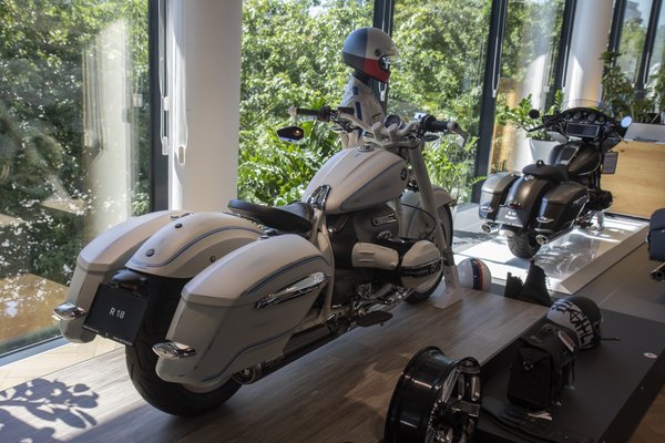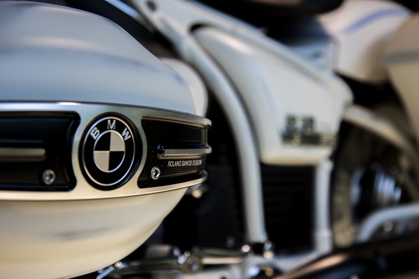 Ezt a patinásított fehér R18-at a magyar Moto Jungle műhelyben építették, felkérésre, de kizárólag gyári BMW-kiegészítőként elérhető cuccokkal, hogy a műszakiztatással se legyen gond. A BMW-logót mintázó kipufogóvég nagyon sok R18-on látható, ez viszont itt egy járós autó árába kerülő Akrapovic rendszer, a dobozok pedig ugyan az R18 Transcontinental gyári dobozai, az azonos név ellenére a vázkialakítás más volt a két motoron, így ezek a dobozok is elég sok munkaórával kerülhettek fel rá.
