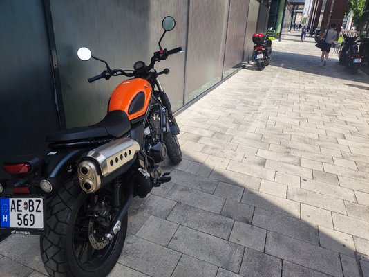 Ettől még nem mondhatni, hogy a CL500 rosszul nézne ki. Bár nekem ez a csupasz roadster jelleg nem kifejezetten ízlésem, de ettől még elismerhető, hogy a maga műfajában egy kifejezetten friss, újszerű és fotogén darab. Ráadásul a teljesen fekete gépet üdítően megtörő narancssárga tank telitalálat, és még háromféle színű tankkal kapható (tengerkék, ami ehhez a narancssárgához hasonlóan baromi látványos, matt fekete és metálzöld). Ez a látványelem rögtön egyedivé és érdekessé teszi a motort, ha nem is piros lámpánál menőzős típussá. Ez egyszerűen nem erre van kitalálva.
