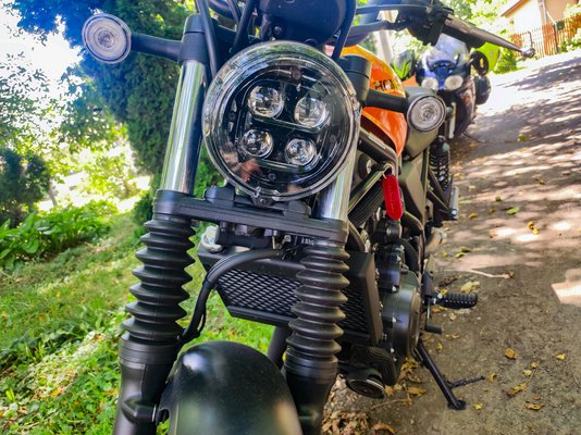 Ami kevésbé az erőssége, az a komolyabb sebesség autópályán, országúton. Eleve ennél a csupasz kivitelnél leesik az ember feje a széltől, de van, aki ezt megszokja valahogy, sőt egyenesen élvezi. A soros, kéthengeres, 46,6 lóerős gép végsebessége papíron 170 km/h, ameddig persze nem jutottam, 130-at szenvedtem ki a szélben, de ez érezhetően kemény feladat volt, mégpedig nem csak a szél miatt.