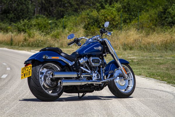 Nem is csodálom, ha tényleg így van. A Fat Boy már puszta álltában is nagy. Nem is nagy, böszme. Nézd meg azokat az irdatlan első villákat! Oké, az momentán pont kamu, egy burkolat (persze az amik ezt is frankón elnevezeték, beer cannek, azaz sörös doboz borításnak, így hát ki tudna erre haragudni?), alatta ugyanazok a Showa 49-es Dual Blending Valve villák laknak, mint mondjuk a Breakouton, aminek elméleti lényege, hogy a csillapítás a behatás sebességétől függően változik, és így úgy lesz jó, hogy kanyarban mégsem ring, mint a Rose d'Or a monacói kikötőben. Mármint elvileg: 317 kiló plusz a rájder azért egy kicsit mégiscsak hajózik. De ez ilyen műfaj, hát mit csináljon ekkora tömeg? Pattogjon?