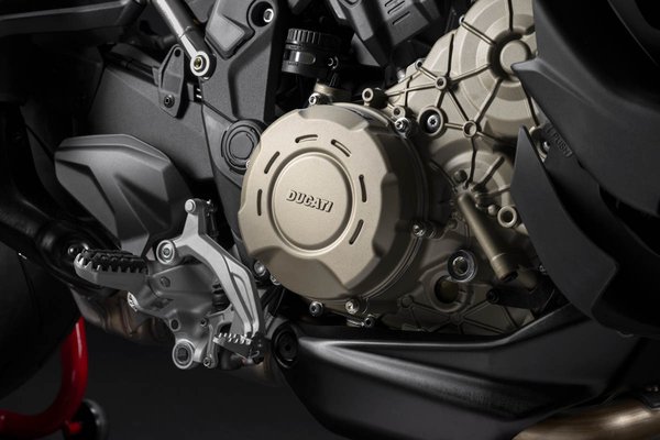 Szóval fogta a Ducati és kiebrudálta a Grandturismo V4 blokkot a Multistradaból, helyére pedig a hírhedt Desmosedici Stradale került a V4 RS változatban. 180 lóerő, 118 Nm forgatónyomaték és 13.500-nál húzódó vörös vonal. Nyilván nagyon disznó lehet a cucc! És, hogy ez az egész egyrészt kíméletesen működjön, másrészt a Circuit de Valencián kívül is használható legyen, bizonyos körülmények között (ilyen például amikor egy helyben álldogálsz, mondjuk egy piros lámpánál) az ECU levágja a két hátsó hengert.