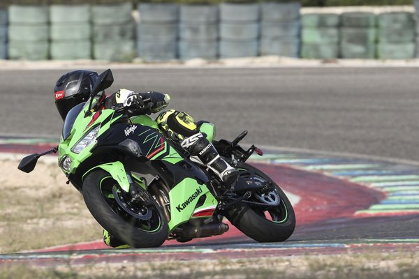 “Ha elkapjuk a kanyarban a megfelelő sebességfokozatot – néhány bekezdéssel korábban arról ír, hogy pályán figyelni kell a magas fordulatszámra, mert 8000-ről nehéz visszajönni – akkor nagyon fontos, hogy finoman tegyük rá az ideális ívre a motort. Ez koncentrációt igényel a motorostól. A ZX-4RR-t attól még nem könnyű vezetni, hogy az ereje barátságos.” Ugyanakkor Axel szerint a mérleg másik serpenyőjében ott van, hogy a blokk ereje és karaktere, a motor könnyű tömege, játékos kezelhetősége jól aládolgozik ennek az odafigyelős, kevés játékteret engedő stílusnak, amit megkövetel a pályán a kis Kawasaki.