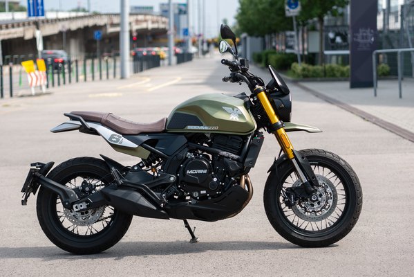 Merthogy ez olasz, kérdezzünk meg bárkit, aki nem ért a motorokhoz. Moto Morini. Ilyen névvel ristrettót szoktak inni a veronai főtéren. Ráadásul Seiemmezzo. Ez sem egy halszósz márkájának tűnik a sarki kínaiból. A nem olaszságról öt centi tanúskodik: a motorblokk oldalán egy Made in P.R.C felirat, de az meg mégsem Kína (DE).