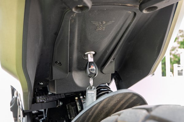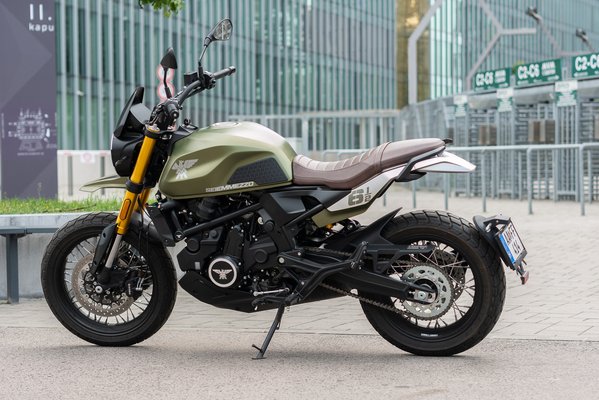 A kormány szélessége miatt pedig még az én nem pont legendás kanyartechnikámmal is elképesztően könnyen lehetett kanyarodni, vagy kerülgetni a kocsikat, kátyúkat és aszfaltfelgyűrődéseket, amennyiben elfértem a sorok között. A széles kormányon kívül TFT monitort is kapunk, ami egészen jó, bár igazán tűző nappal nem találkoztam. A bal markolatból bejutunk a menübe, ahol telefont tudunk párosítani, kilométereket, hőfokokat, meg amit ilyenkor szokás. Ledlámpa, Brembo fékek, állítható Kayaba teleszkópok, állítható karok, ABS. A szépségen túl a Seiemmezzo ezeket tudja, ami teljesen korrektnek tűnik. És van még keréknyomás szenzor is. Na ez már bőven több, mint korrekt, ilyet a felsőbb kategóriákba szokás rakni. A dizájn egy helyen fekszik keresztbe a praktikumnak. Most nyissa meg mindenki a galériát, és keresse meg a motoron az ülés alatti tároló zárjának helyét! Igen, jól látják, valóban a hátsó kerék ívjáratába rakták, hogy ne rontsa az összképet. Én mondjuk meglettem volna a látványával, de a maximalizmust dícséretesnek tartom. Remélem ezt nem gondolom másképpen egy két év motorozás után sem, amikor már beleragadt a zárba az összes dzsuva az útról, amit felhordott az abroncs. Mivel itt úgysem látszik, ezért egy kupak talán elfért volna rajta. De aztán lehet kiszámolták, és pont nem fog semmi ilyen történni. Szóval így indultunk neki a vadászatnak, én és a bomberem.