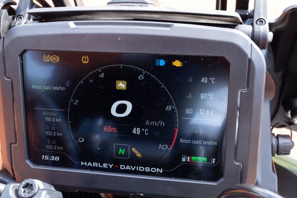 Amiket egy autó áráért nem szerettem: A TFT-kijelzőt. Mintha egy rossz vicc lett volna, olyan a felbontása. Ezt több embernek is mutattam és mindenkinek feltűnt. Egyébként mutat mindent, sőt! Többet is,mint kéne. Akinek ez nem elég, az nem tudom mit akar. Amúgy, ha letöltöd a Harley alkalmazását a telefonodra, azzal össze tudod kötni a telót a motorral, és lehet zenét vezérelni, hívást fogadni markolatról, meg a telefonon indított navigációt használni. Természetesen van töltéshez és a műszeregység frissítéséhez USB kapcsolat, ami C-s, szóval újra vehetünk kábeleket, de ez egy ideig legalább marad, ha minden igaz. Nem szerettem még a széthulló zárakat a dobozokban. Ez persze lehet, hogy csak valami egyedi eset... A futómű pedig kirógózáskor furcsán csattan (egykerék, ugrás, etc., szóval ilyen normális helyzetekben :D ). És nagyon nem szerettem a hosszú tank miatt iszonyú messze lévő kormányt sem. Ez valami vicc, mert majd két méter vagyok, de még nekem is megfájdult a hátam rajta. Így eleve teljesen elforgatni sem könnyű az árbócot, nem tudom mi volt az elképzelés.