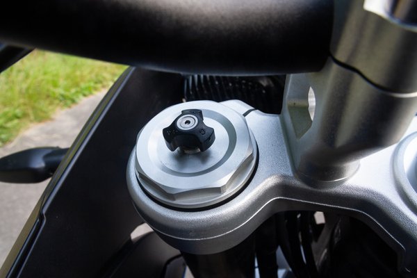 Az érzékletesség vezérfényét követve, a legszembetűnőbbekkel kezdem. Azokkal a perifériákkal, amik egy motort jó túramotorrá avatnak - és a GT 900-nak végtére is ez a feladata. Az, hogy a szélvédelem működik, már önmagában a műfaj dicsőségfalára szegezi a középkategóriás tigrist. Az pedig, hogy a szélterelő plexi nem egyszerűen csak állítható (khmmm, Transalp 750?), hanem egyszerűen, egy fogantyú segítségével, mindenféle faxni nélkül, akár menet közben is 5 fokozatban átbillenthető a felső és az alsó álláspontok között, az egészen egyszerűen a világ királysága. Egyszeri V-Strom tulaj vagyok, elhiheted, hogy ez nekem már önmagában selling point, és alig akarom elhinni, hogy ez ilyen. Tudod, milyen kiegészítő plexit vennék rá? Semmilyet.
