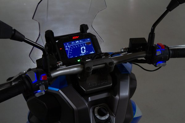 A szegmenses monokróm kijelző ettől függetlenül eléggé rendben van, mutatja az első-hátsó guminyomásokat, a külső hőmérsékletet és a hűtővízét is, meg persze óra, benzinszintjelző és fordulatszámmérő is van rajta. Külön visszajelzői vannak az indexnek, illetve az olyan állapotjelzőknek, mint az olajnyomás, ABS vagy check engine, szóval a műszerfal önmagában komplex, és a kulcs nélküli indítás is jól működik; a kormányzár oldásától kezdve az ülés kinyitásáig és a motor beindításáig mindent megoldasz a kormány alatti multikapcsolóval.