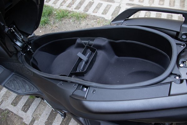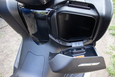 De megvannak a klasszikus praktikus elemek is, mint a kormány alatt található mély tárolók. A jobb látszólag üres, ám a tetejében van egy NFC-chip olvasó, így ha lemerül az elem a motor kulcsában – mert amúgy keyless –, akkor sem leszel meglőve. A bal tároló csak akkor nyílik, ha a kulcs a motor közelében van. Ebben USB A és C töltőket helyeztek el és egy OBD olvasót, hogy a szerelőnek is könnyebb dolga legyen. Van még egy rugós-csapóajtós tároló a kijelző alatt is, én ebben kulcsokat, kisebb kapu távirányítót tartottam, de jó ötletnek tartom a felesleges tér praktikus kihasználását.
