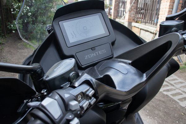 Ezért is vacilláltam annyira, hogy ne legyen-e esetleg a tesztnek olyan címe, ami az átgondoltságra utal. A Zontes E350-et tényleg nem összedobálták abból, mit a polcon találtak, itt komoly fejlesztés és mérnöki munka zajlott. Eleve izgalmas, hogy tele van olyan extrákkal már alapból is, amiket más gyártók súlyos felárért nyújtanak. Sok fokozatban állítható markolatfűtés, ugye az elektromos szélvédő, a gombbal nyitható ülés és üzemanyag betöltő nyílás, és akkor még szó sem esett a műszercsoportról.
