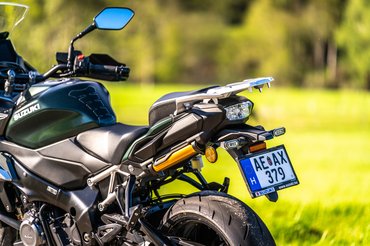 Ebben van egyébként a legtöbb kényelmi és biztonsági extra, nem véletlen, hogy egy lépcsővel feljebb van, mint az aznap hajtott 800-asok. Eleve a gombok száma magasabb volt a kormányon, erre már jutott tempomat és egy valamivel komplexebb LCD kijelző is. Ezen már a SDMS-a , azaz a Suzuki Drive Mode Selector Alpha is elérhető, ami öt hangolható elektromos rendszert foglal magába. Ez beleszól a teljesítménybe, fékrendszerbe, futóműbe, vezetéstámogató elektronikákba, így emelve a biztonság fokát akár esős időben is. Ezt speciel nem próbáltuk ki, de úgy tudom, hogy a kolléga már naptárba jegyezte az egyhetes tesztmotort, ő többet tud mesélni majd.