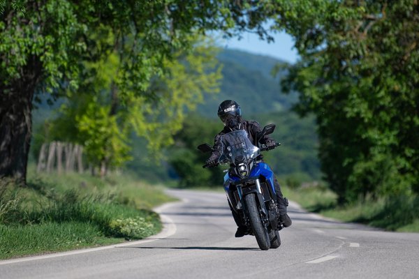 Nem is pipiskedtem rajta annyit, mire elindultam, utána meg minden mindegy. Szinte biciklinek érződik a 223 kilós túraenduró, azt csináltam vele, amit csak akartam. A blokk ugyanaz, mint a GSX-8R-ben, de ehhez a motorhoz jobban illik a jól kiegyensúlyozott sorkettes. Van benne bőven akarat, fordulaton pedig némi hang is felszabadul belőle, bár el tudnék képzelni ennél szebbet is. Kanyarban istenien viselkedik, talán lejjebb mertem tolni, mint a sportosabb testvérét, nagyon meglepett.