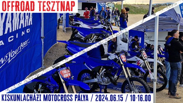 2024.06.15-én off-road tematikával készül a Yamaha Motor Hungary, ahol a márka MX gépeivel tehetsz próbát a kiskunlacházi motocross pályán. A rendezvény ingyenes, de a tematika megköveteli a megfelelő ruházatot. Egy-egy motort ~10 percen keresztül lesz lehetőséged nyúzni. Az elérhető motorok: YZ65, YZ85, YZ125, YZ250LC, YZ250F és YZ450F.