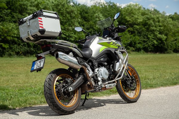 Nem szaggatja le sportmotorosan a karjaidat, de utassal is megvan a 200, bombastabilan túrhatod a belső sávot a pályán, hiába kéne bezavarnia a nagy fémkoffernek és az utasnak a 20 centis rugóutak által nehezített helyzetben. Egyszerűen állandóan figyelnem kellett a sebességadatot, mert mindenhol annyival gyorsabban mentem, mint más motorokkal szoktam, hogy már aggódtam, hogy mikor futok bele valami kellemetlen mérésbe. De a kiváló egyenesfutás az hagyján, az off-road-os képességek ellenére a nagy tempójú nyújtott kanyarokban atomstabil volt a gép. Vác után a nagy kanyarokban húztuk a lábtartót két személlyel és a kifejezett fékezéses szemétkedéseken kívül meg nem mondtam volna, hogy nem valami totál utcai túramotoron ülünk.