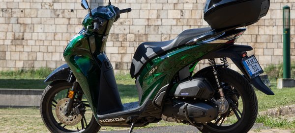 Robogóval nem csak hatékonyabb, zöldebb is vagy, mint a legtöbb autós. A Honda SH125i VETRO esetén ez utóbbit szó szerint is értheted, mivel az új, áttetsző zöld burkolati elemei állítólag közel 10% széndioxid kibocsátást spórolnak meg a hagyományosan festett elemek gyártásához képest. Mókus vagyok, vakulok. Szerencsére minden más szempontból az SH mentesült a marketing-zöldségektől, hiszen nincs szüksége ilyesmire: jó termék, és kész.