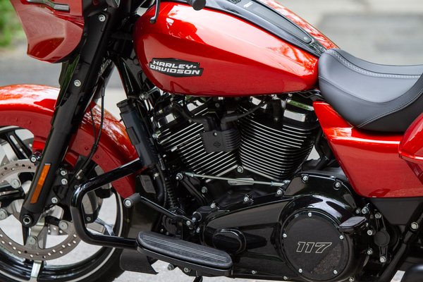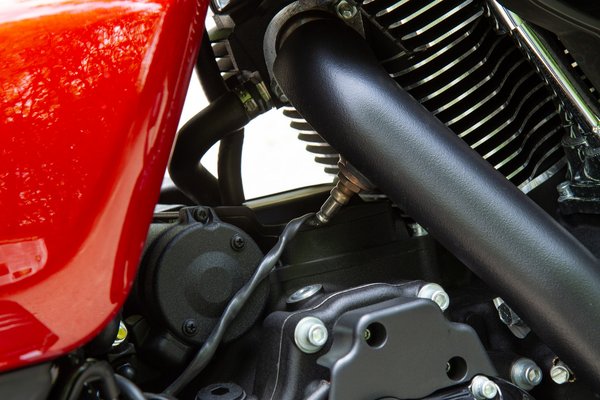 Az oldschool elemek mögött persze felbukkan a modernség. Az évek alatt sokat fejlődött a 117 köbinches, tehát 1923 köbcentis, vízhűtéses blokk: alul nyomatékos, felül nagyon erős, egész keveset fogyaszt, és a vibrációja pont annyi, amennyi a hangulathoz kell. Öregek és rég elavultak már azok az előítéletek, hogy a Harley-blokk gyenge, és azt a keveset is bután adja le. A mostani, modern blokk már nem ilyen: gyorsvonatos tolást küld alul, fordulaton pedig rendesen megtáltosodik, széles tartományban használható. Már 2000-nél is nagyon szépen viszi a 370 kilós testet, de az igazi buli 3500-nál kezdődik, ahol lead 175 Nm nyomatékot, 5000-nél pedig megjön a 107 lóerő, párhuzamosan a vigyorral. Pedig ez már nem is a csúcs, amit a Harley-nál lehet kapni, hiszen ott van a krém, a 121-es, változó szelepvezérlésű (VVT) csúcsmotorjuk, ami idén letaszította a trónról ezt a blokkot.