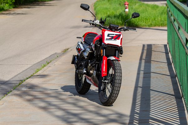 Itt pont ugrik, ha épp szükség lenne egy kis plusz erőre. Vezetni elképesztően könnyű, kicsi a súly, széles a kormány, jó a futómű. Az egész motor egy hímszúnyogra emlékeztet, mind viselkedésre, mind külalakra. Ott van lábaknak a motorhoz képest nagy kerekek, a fura formájú tank meg simán beillik szájszervnek. És közben olyan természetesen libben el, ha épp le akarnánk ütni, amilyen könnyedén fordul a Flat Track. A gyerekeknek ijesztő, de közben nem veszélyes - hiszen a hímszúnyogok nem kívánják a véred - és a Mondialtól sem kell tartani.