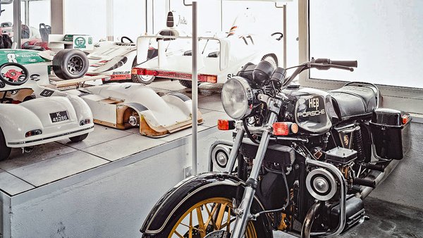 Szóval, nemcsak szériaautók, hanem különböző versenygépek, prototípusok, modellek, sőt, akár filmes kocsik is megcsodálhatóak. Van azonban egy másik, nem látogatható raktáruk is, ahol szintén jó pár csoda gép áll – ez Kallenbergben található, s nem látogatható a nagyközönség számára. Évekkel ezelőtt azonban sikerült bejutnom ide, s a versenyautók és prototípusok között felfedeztem egy oda nem illő tárgyat, egy motorkerékpárt is!