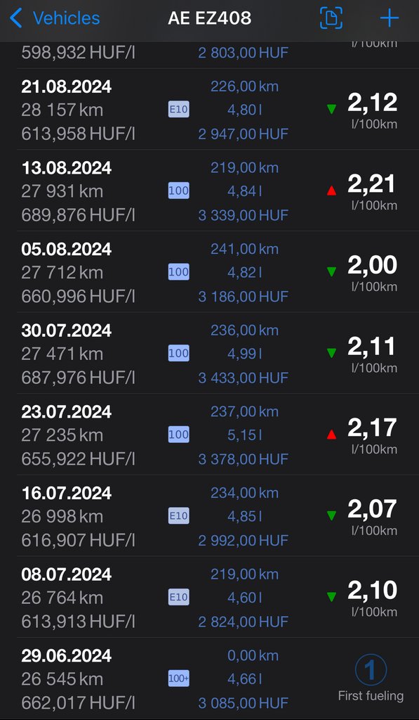 220-250 kilométer van meg az üzemanyagszint figyelmeztető villogásáig, aztán jön egy 5 liter alatti tankolás nagyjából 3000 forintért, szóval 2,0 és 2,3 liter közt alakul a valós fogyasztásom, és bár túl nagy különbség nincs a félig húzott gáz és a teligáz között, de nem óvatoskodom beteg módon csak azért, hogy csökkentsem a fogyasztást, nem is tapasztaltam, hogy ez bármennyit számítana. 80-ig egész dinamikus, fölötte egyszerűen nem kívánja, éppen 100 fölött van a végsebessége, városon belül még utassal is rendben van, városon kívül viszont kevésnek fogod érezni, országúton biztosan előzgetni fog a többség.