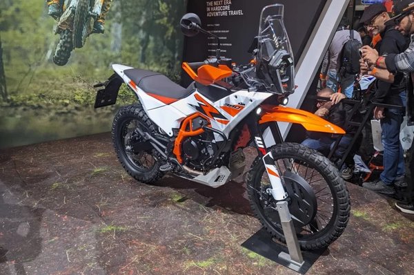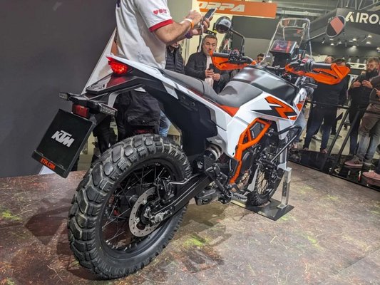 Az idei EICMA-n csak az R változatot állította ki a KTM, ami nem biztos, hogy minden részletében egyezni fog az alapkivitel felépítményével, de a ralimotoros stílus, a fordított U-alakú nappali menetfénnyel egybeépített fényszóróegység és a 2024-es modellhez képest praktikusan keskenyebb tank várhatóan hasonló lesz. A magasra emelt első sárvédő, aminek célja egyébként, hogy tömődjön be a sár a kerék és burkolat közé, már várhatóan csak az off-road kivitel jellemzője lesz majd.