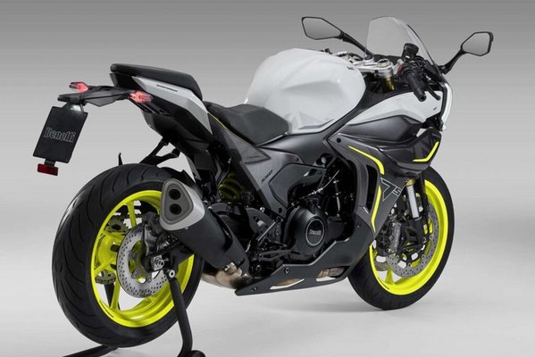 Az idomzat gusztusos. Szexi. Kellemesen takarja az acélvázat; egy jó fényezéssel (sajnos csak szürke, fekete és fehér lesz első körben) pedig egészen jól vonzza el a tekintetet az egyszerűcske lengővilláról. Itt már az arányok miatt nincs szükség oszlopvastag első villákra, mint amikkel ismert lett az újkori Benelli, elég ide a 41-es Marzocchi is, 110 milliméter rugóúttal. De legalább az előfeszítés állítható - mármint hátul. Szerszámmal. Na de a fék az tényleg jól néz ki: Brembo, nem a szokásos sajátmárkás darab, hanem rendes, piros feliratos, monobloc, 4 dugattyús klasszik.