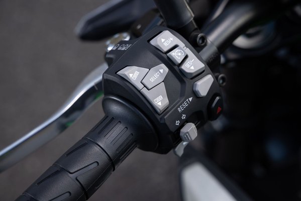 Ennél sokkal fontosabb azonban a menetdinamikát befolyásoló elektronikai csomag megjelenése. Jó barátunk, az IMU segítségével végre dölésszög-érzékeny a blokkolás- és a kipörgésgátló is, valamint az oda-vissza működő gyorsváltó mellett a tempomat is az alapfelszereltség része.