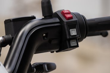 Ha ügyesen bánunk a gázkarral, ritkán fog kelleni az elöl dupla, hátul szimpla úszónyerges fékrendszer, mivel a motor rekuperációval is képes fékezni. Ez bár nem olyan intenzív, hosszú fékutakkal sokat tehetünk azért, hogy később kelljen a töltőhöz nyúlni. Pedig az sem olyan lassú: a gyorsabb változata papíron 90 perc alatt feltolja a motort 20-ról 80 százalékra, azonban a nullára merítettük és tele töltenénk, az jó 2-2,5 óra.