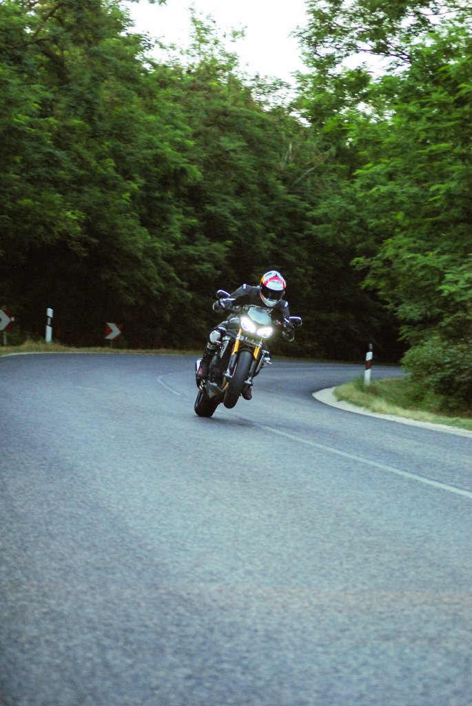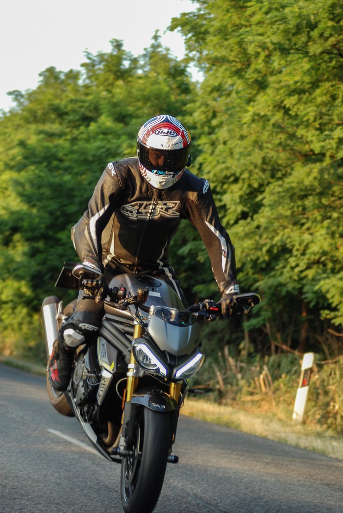 Miután a szemeim eleget ettek, hamarosan könnybe is lábadtak. In medias res: a városból kifelé hamar kikapcsoltam az elektronikát, és egykeréken indultam a zöldre, első keréken gurultam a pirosra. Meglepően könnyű dolgom volt a nehézbombázóval a lámpától lámpáig utcai harcban. Nagyon szórakoztató szinte bárhova keresztbe befordulva érkezni, legyen szó kigyorsításról vagy féktávról. Borzasztó feelinges a brit huligánnal rombolni a városban, mindenféle racionalitást mellőzni, csak a pillanatnak élni. A 765-ös kistesó, a Street Triple tuti élhetőbb motor, Bistei/Lövey meg mindenki megmondta már a szakmában: igazuk is van. De pont ettől a felesleges plusztól annyira hangulatos a Speed.