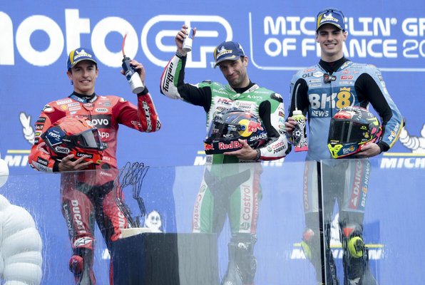 Gyönyörű sporttörténelmi pillanat volt, ahogy Zarco áthajtott a Le Mans-i célvonalon, miközben a több tízezer francia rajongótól szinte felrobbantak a lelátók. Ezúttal tényleg élőben nézhettük azt, amit később emlegetnek majd: 71 éve nem nyert francia pilóta a királykategóriában Le Mans-ban. Zarco a Hondával ráadásul megszakította a Ducati nyerőszériáját is: 22 futam óta kizárólag Ducatival nyertek futamot. Egészen eddig.