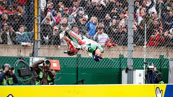 Johann Zarco második királykategóriás győzelme volt ez, esőben, a tizenhetedik helyről rajtolva, hazai pályán, hazai közönség előtt. Csodálatos. Természetesen a védjegyévé vált hátraszaltó, és az érzelmes pillanatok se maradtak ki.