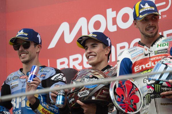 Egy kis ideig úgy tűnt, hogy Bagnaia tartja a tempót, azonban először Alex Márquez, majd valamivel később Marc Márquez is lenyomta. Ez a sorrend maradt is a verseny végéig, vagyis a dobogóra az idei szezonban megszokottak szerint álltak a pilóták. A legfontosabb azonban ezúttal nem a sorrend volt: végre látszott, hogy Peccóban ott az akarat, hogy megküzdjön a győzelemért.