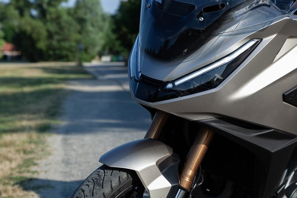 De ez nem azt jelenti, hogy nem lehet vele tisztességeset haladni. 1084 köbcentit, 101 lóerőt (7500-as fordulaton) és 112 Nm forgatónyomatékot (ez 5500-as fordulaton érkezik) még mindig nem illik félvállról venni, és hiába nem suttogja fülembe a rosszaságot, az egy masszív erőmag, ami ezres túramotorhoz illően indítja meg a DCT-vel 248 kilós tömeget. 180? 200? Nem téma. Hegynek fel? Nem téma. Két személy és sok csomag? Nem téma. Azért a régi bölcselet még mindig él: a vonóerő a köcsögből érkezik, szóval ott lakik a nagy köbcentiben a póver akkor is, ha azt hinnénk, le van csavarva a potméter. Kicsit olyan, mint a mosonmagyaróvári edzőteremben a Kiss Laci bácsi, aki bőven nyugdíjkorhatár után is felhúzott 170-180 kilót, ha kicsit nekiveselkedett.