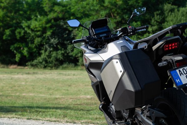 Az első sárvédőt 150 milliméterrel hosszabbra szabták, de ezt esőben nem volt módom kipróbálni a szaharai június végén. Az oldaldobozokat pedig 33 és 32 literről 37 és 36 literre növelték. Ennek megvan az az előnye, hogy így befér egy teli bukósisak a dobozba, de közlekedni nem olyan jó vele. Egyszerűen nagyok lettek, amik túlnyúlnak a kormány szélességén is, ezt pedig egy hét együtt töltött idő alatt sem szoktam meg teljesen. A praktikumot ezen a ponton szerintem inkább beáldozták az igények kiszolgálása oltárán, pedig a mindennapokban együtt élni mégiscsak a korábbi változattal lett volna jó. Kedves Honda, tessék megnézni a BMW állítható szélességű dobozait és tessék eltanulni!