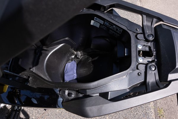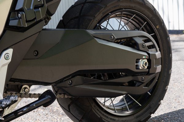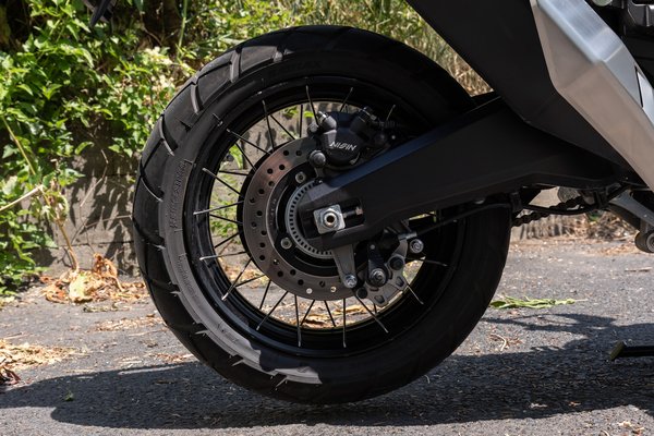 Ha szeretném kategóriákra egyszerűsíteni a dolgot, akkor az X-ADV főleg a robogók és a túraendúrók tulajdonságait vette át. Robogó, mert a kormány és az ülés között simán átemeled a lábadat, az ülés alatt 22 literes tároló van sisaknak, táskának, bárminek és egyáltalán nem kell váltani, ha nem akarsz. Mindeközben viszont túraendúró is, mert rendes futómű van alatta, elöl 17, hátul 15 colos, küllős felniket kapott mélyen bordázott gumikkal, a lemezek alatt masszív csővázat rejt és fel lehet állni kiegészítő lábtartókra. Jó, tudom, hogy ezek nem feltétlenül a két kategória kizárólagos erényei, viszont amit fizikailag lehet, azt az X-ADV adaptálta és ügyesen.