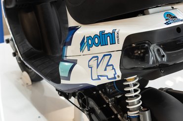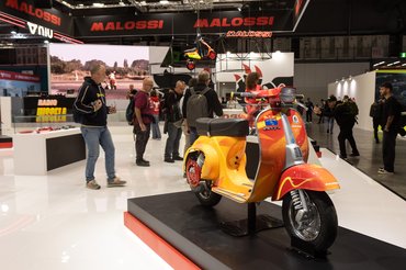 A gyors robogók szerelmesei az Italjet standjánál és a versenysportból ismert alkatrészgyártóknál találhattak maguknak finomságokat, külön kiemelném a Polini standját, ahol a 90-es évekből ismert Piaggio Zip és a még öregebb Vespa-sorozat tagjai is szexibbek voltak, mint valaha.