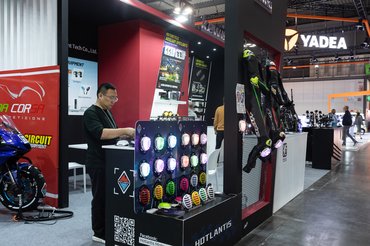 Végül belekóstoltunk a legkisebb standokba is, ahol a világító térdkoptatótól elkezdve a filléres, mégis sokat ígérő QuadLock-másolatokon át a legkisebb alkatrészgyártókig mindennel találkoztunk, személyes kedvencem egy kis tajvani cég, akik kifejezetten MZ, Simson és Jawa alkatrészek gyártásával foglalkoznak – más kérdés, hogy a valós felhasználói visszajelzések alapján ezek az alkatrészek többségükben nem túl jó minőségűek, de az tény, hogy egy világelső motoros kiállításon ilyesmit látni üdítő színfolt.