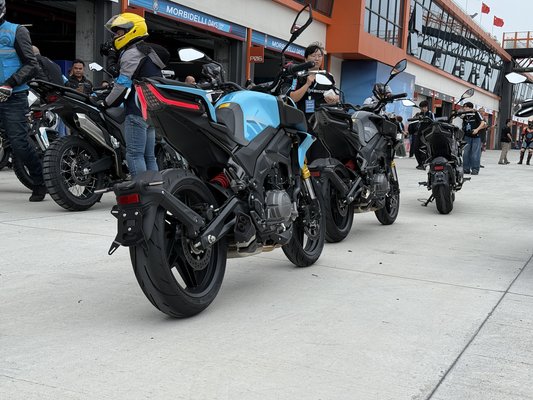 Három részre osztották a teszteket, mi a 3,2 kilométeres, FIA által minősített versenypályán kezdtünk, és 2-3 kör simán belefért, ami 2-3 kipróbálható motort jelent. Nem akartam, de megnyertem első körre a T1002V-t, ami korábban már volt nálam teszten és nem voltam elragadtatva. Összességében korrekt holmi, a V2-es karaktere jó, a felszereltségre és a dizájnra egy szavam sincs, azonban a váz szerintem lehetne erősebb, a futómű pedig feszesebb. Versenypályán ugyanezt éreztem, kanyarban és nagy sebességnél is enyhe imbolygást kellett korrigálnom ahelyett, hogy élveztem volna a versenyaszfaltot és a jól megépített kanyarokat.