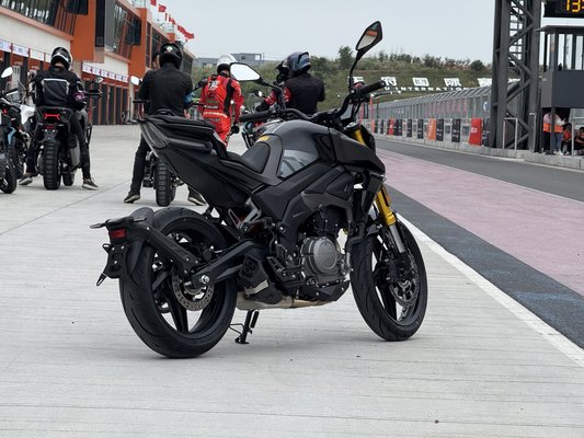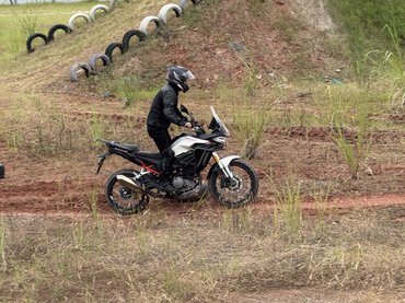 Nehéz ez a motor és magas, pályán nem jó, de a második körben ráraboltam a kistestvérére, a sorkettes T502X-re, és jobb kedvem lett. A súly rengeteget számít, a 47 lóerős blokk karaktere pedig még mindig nem rossz, legfeljebb a hosszú egyenesben nem lehetett elrántani, de ezzel még együtt tudok élni. Az igazi ász a naked F352 volt, mert 41 lóerő ide vagy oda, öröm pakolászni a 175 kilós motort. A futóműve elég, a váz merev és bár testre kicsit kicsi, stabilan kapaszkodtam bele kézzel és lábbal is. Az utolsó körökben simán tartottam az instruktor tempóját, az enyhén szemerkélő eső sem késztetett lassításra, állati jól szórakoztam, és nekem ez a motorozás lényege.