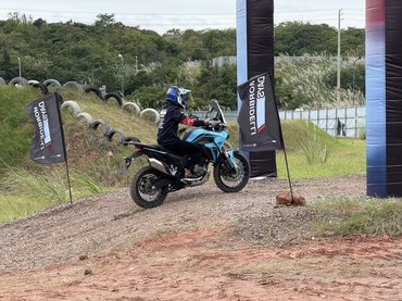 Egyedül az off-road pályának estem neki összeszorított farpofákkal, főleg, amikor láttam sorakozni a T1002VX-eket. Aszfalton is nehéznek érzem, nincs az az isten, hogy 265 kilót rángassak a homokban. Szerencsére voltak kisebb, 502X és 352X-ek a kínálatba, nekem utóbbival is bőségesen elég volt átugrani a rönkökön, kihúzni magam a süppedős homokból és ívre venni a mandinereket. Szerintem még sosem kapaszkodtam ennyire motorba, főleg, amikor előttem hasalt el a vizes, fényesre kopott farönkön egy kolléga – az megadta az önbizalmat. Kipróbáltam, mert ki kellett, és nem volt rossz a futómű, stabilabb volt a motor annál, mint amire számítottam, de egyszer elég volt.