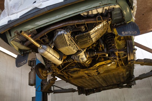 A nagy átalakulás előtt várt egy komolyabb beavatkozás a Skodára, méghozzá egy alapos szárazjegezés a padlólemezen, a küszöbökön, illetve a motortérben.