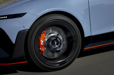 Az eleve szerencsésebb karosszériaforma miatt kevesebb merevítést kellett alkalmazni, de a hátsó ülések mögött így is feltűnik két vaskos merevítő. Alacsonyabb tömegközéppont és kisebb oldaldőlés jellemző a 257 km/h végsebességű Ioniq 6 N-re, viszont hűtési felületből kevesebb jut az 5 N-hez képest, így okosabban kellett csatornázni a levegőt az autó elején. A Cd-érték a kovácsolt alumínium aero felnikkel és a gyári szárnnyal 0,27, elöl 400 milliméteres féktárcsa van négydugattyús féknyereggel, hátul pedig egy 360 milliméteres, sima úszónyerges megoldással.